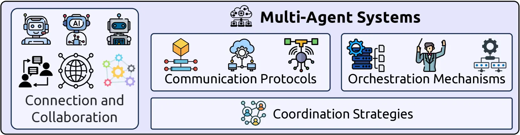 논문 (5.4 Multi-Agent Systems) 에서는 멀티 에이전트 시스템에서의 통신 프로토콜과 오케스트레이션의 필요성을 언급하고 있습니다.